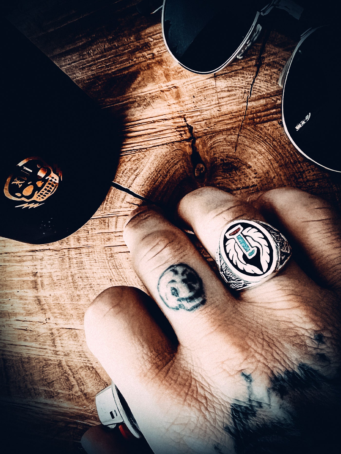 We teamed up with the factory that made some of the classic vintage biker & rock rings from the 1970’s and had them remake 2 of Johnny’s favorite vintage rings.