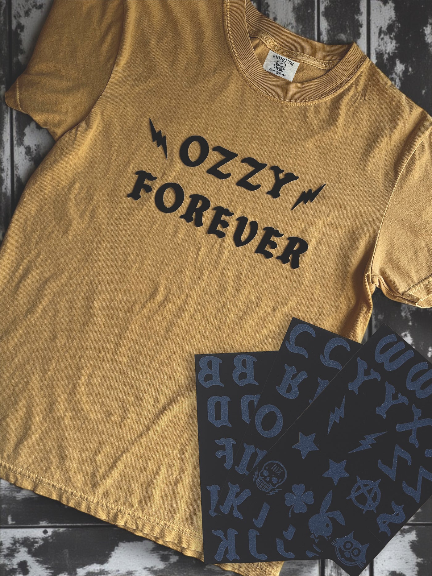We've re-created an iconic flock letter iron on set from the 70's & 80's paired with our vintage inspired tees and some of our own killer design elements to take your creativity to the next level.
