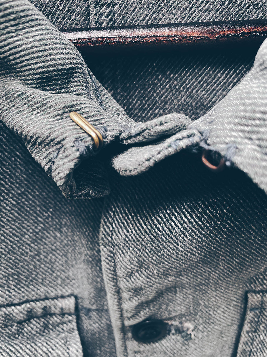 Vintage 1940's prison Jacket. A tribute to the music and iconic style of the incomparable Bob Dylan. This rare piece of prison workwear from Switzerland is durable yet comfortable; made of one of the most coveted denims ever. Durable yet soft.