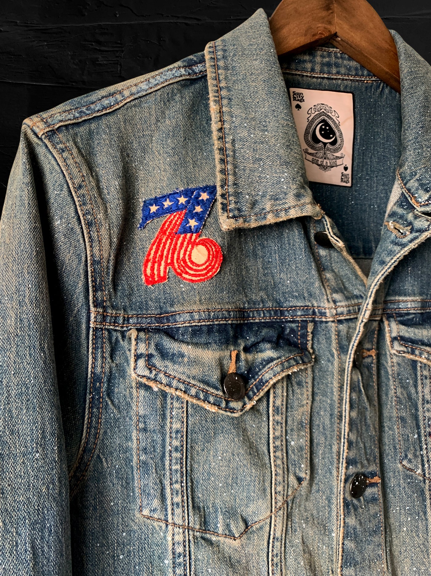 The spirit of New York 1976 comes to life in this one of a kind denim jacket.