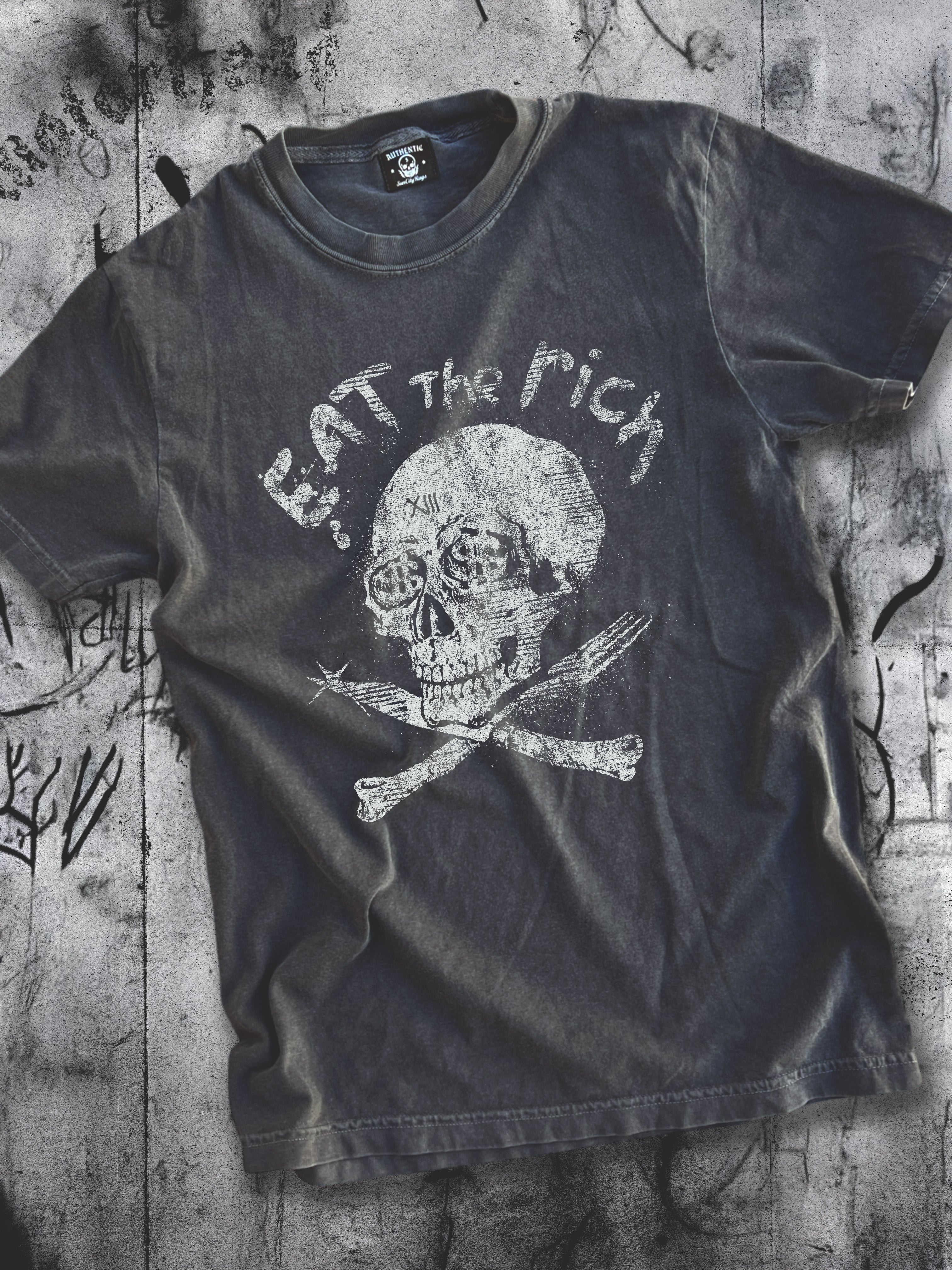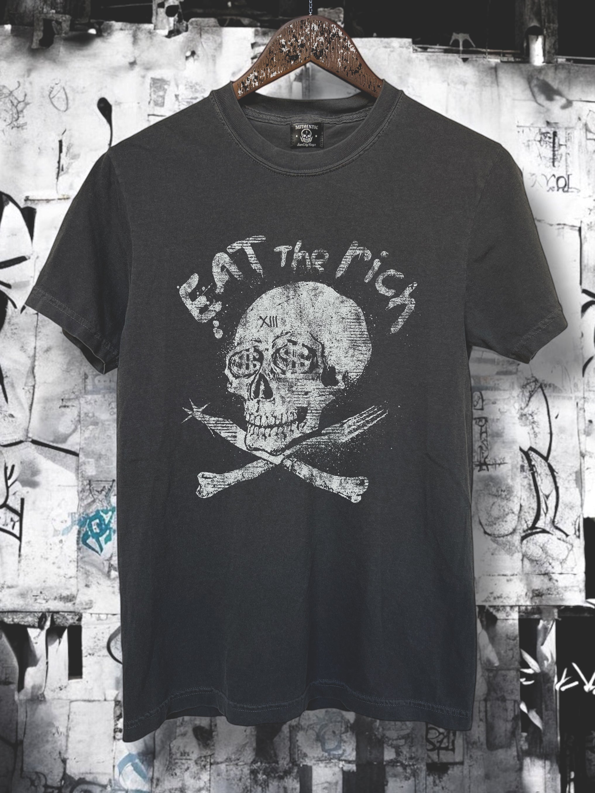 With origins in the French revolution “When the people shall have nothing more to eat, they will eat the rich”, this slogan has inspired art & iconic songs by Motörhead, Aerosmith and more for generations. Still feels timely today.