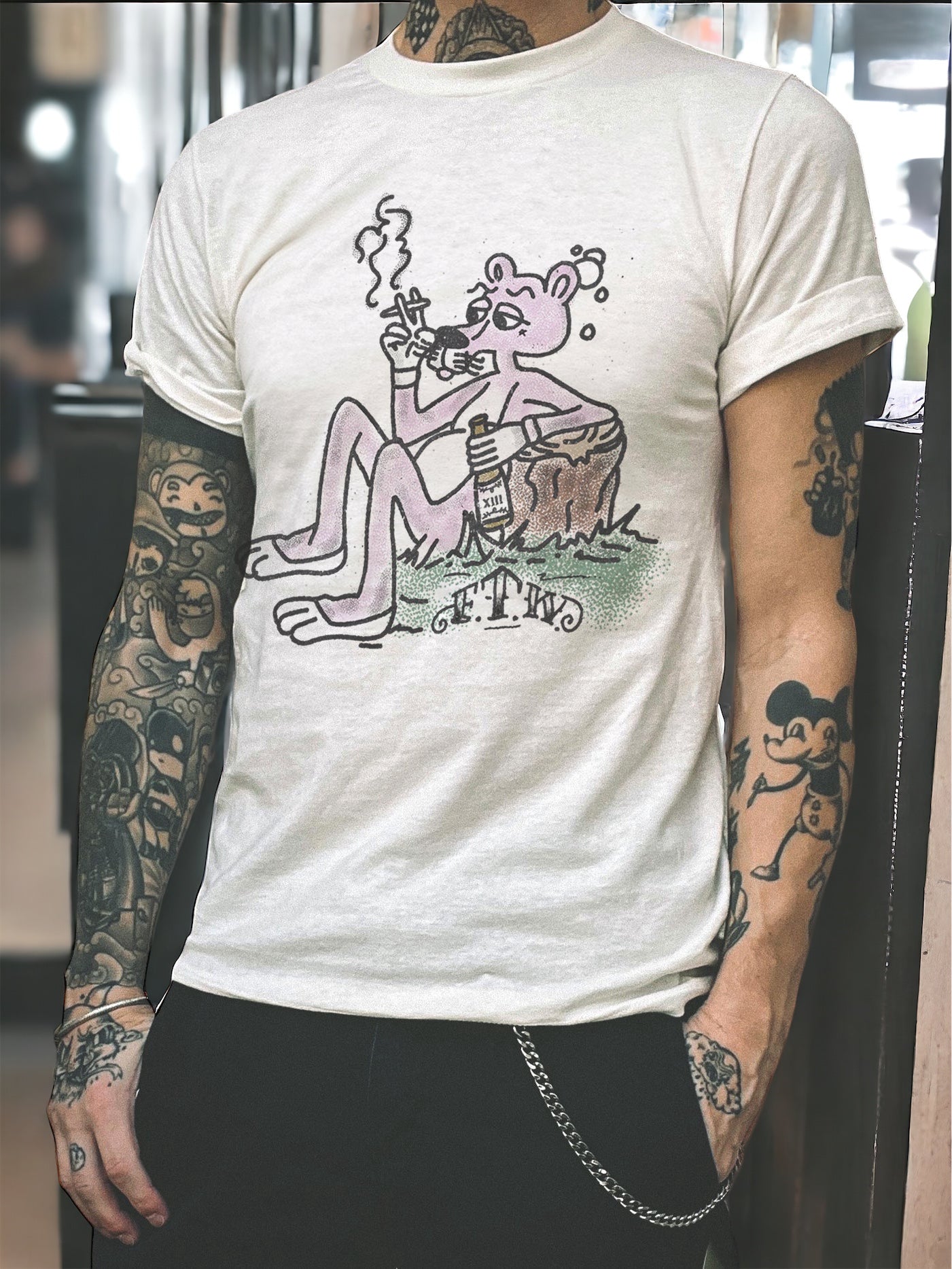 - T-shirt color - Vintage white