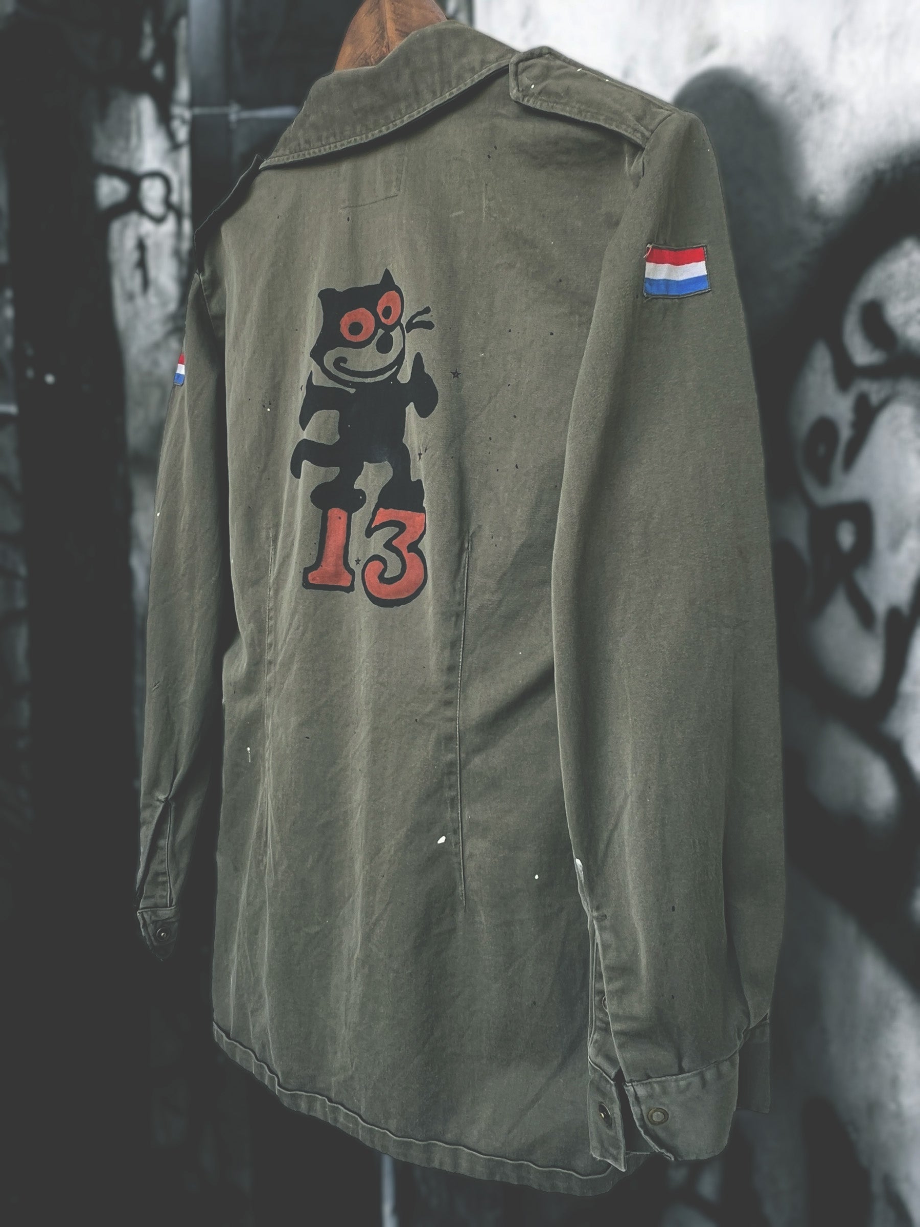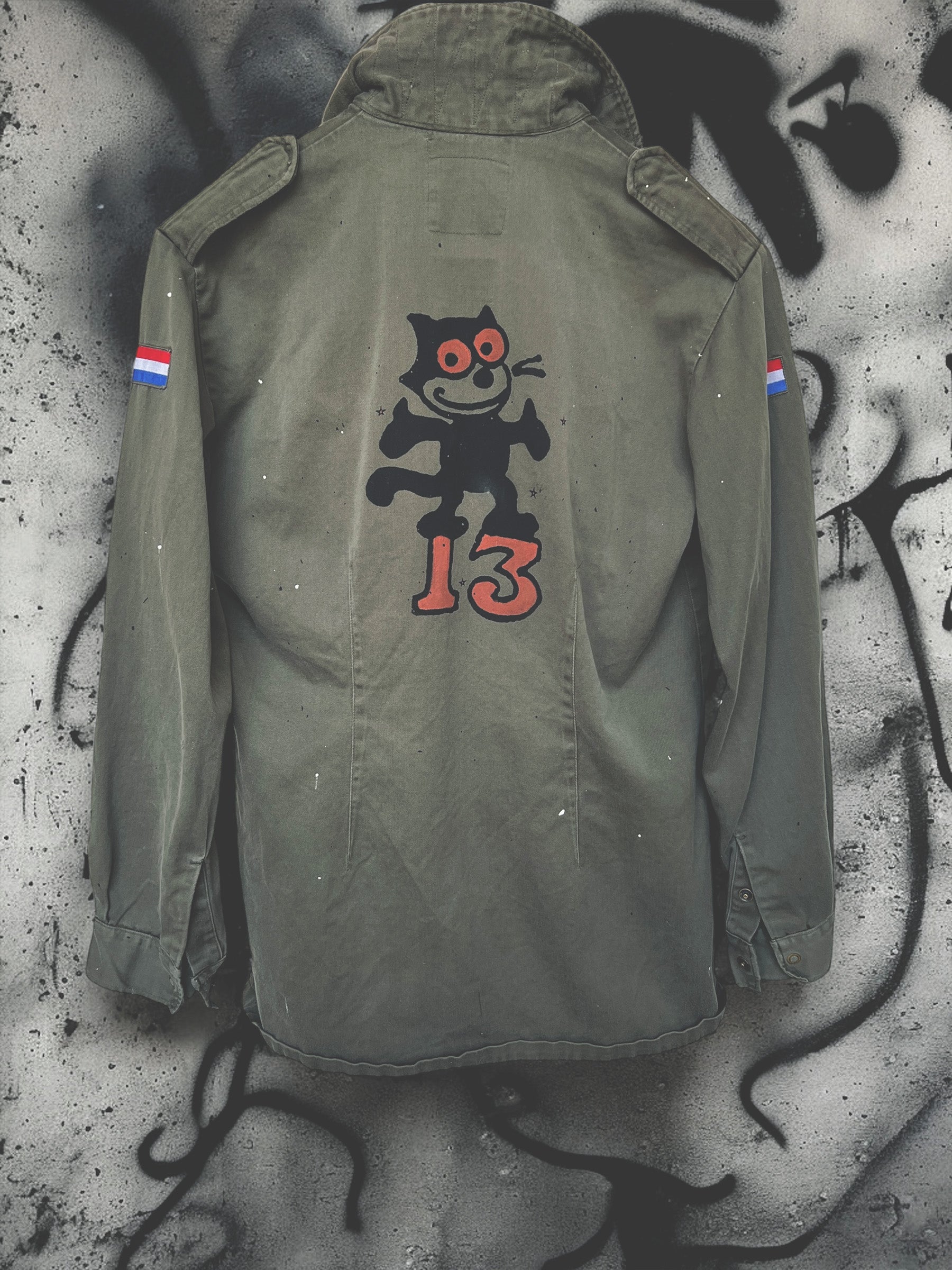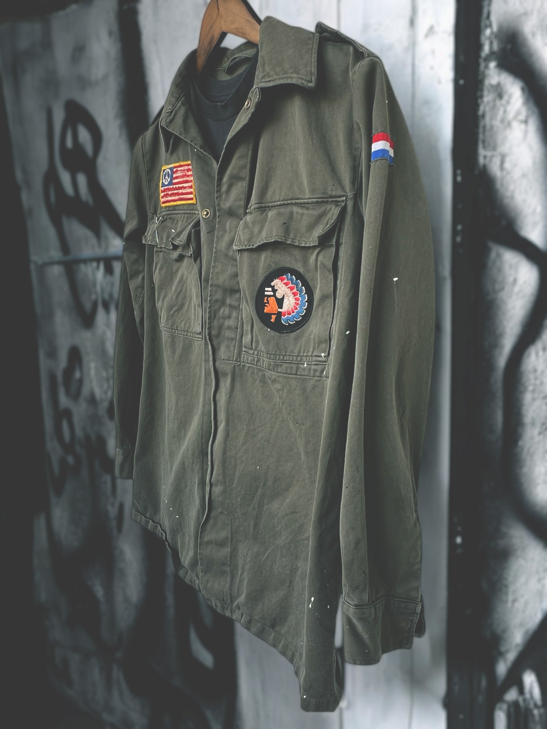 This vintage Dutch military jacket has been meticulously designed & customized by artist Johnny Smoke.