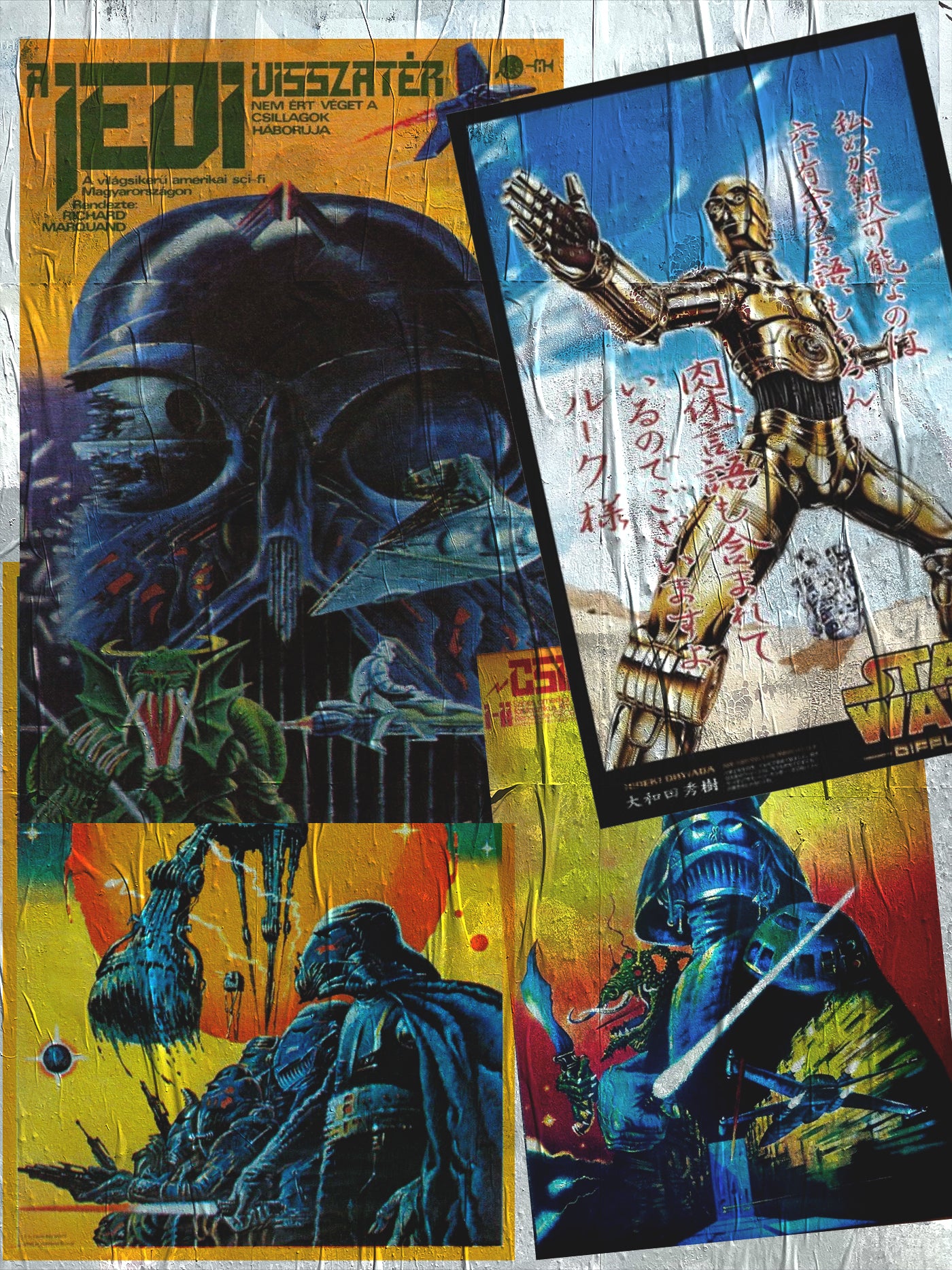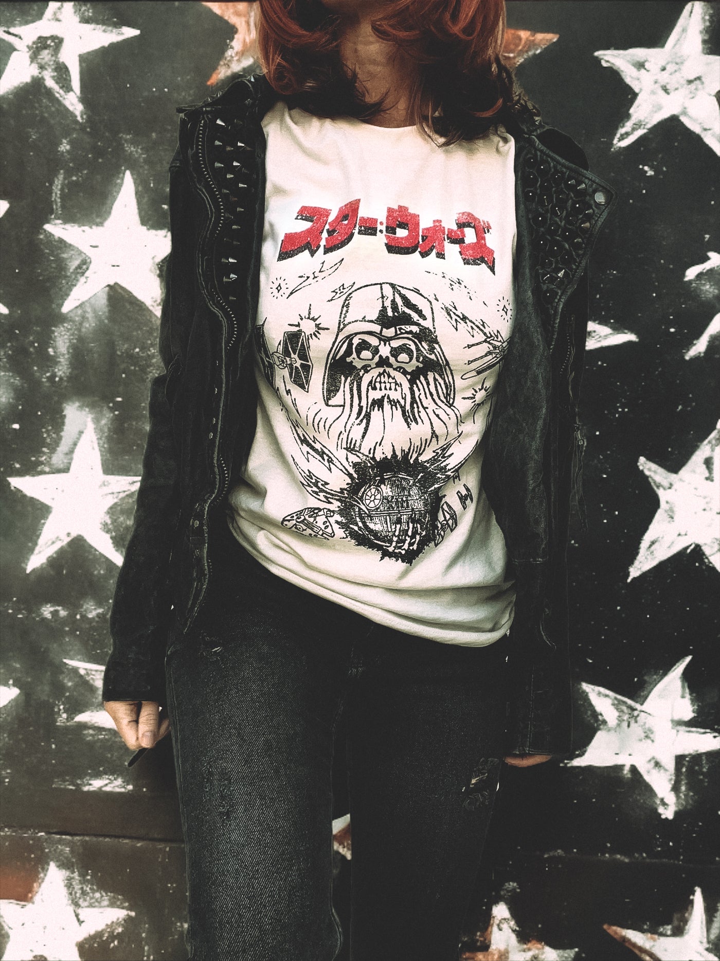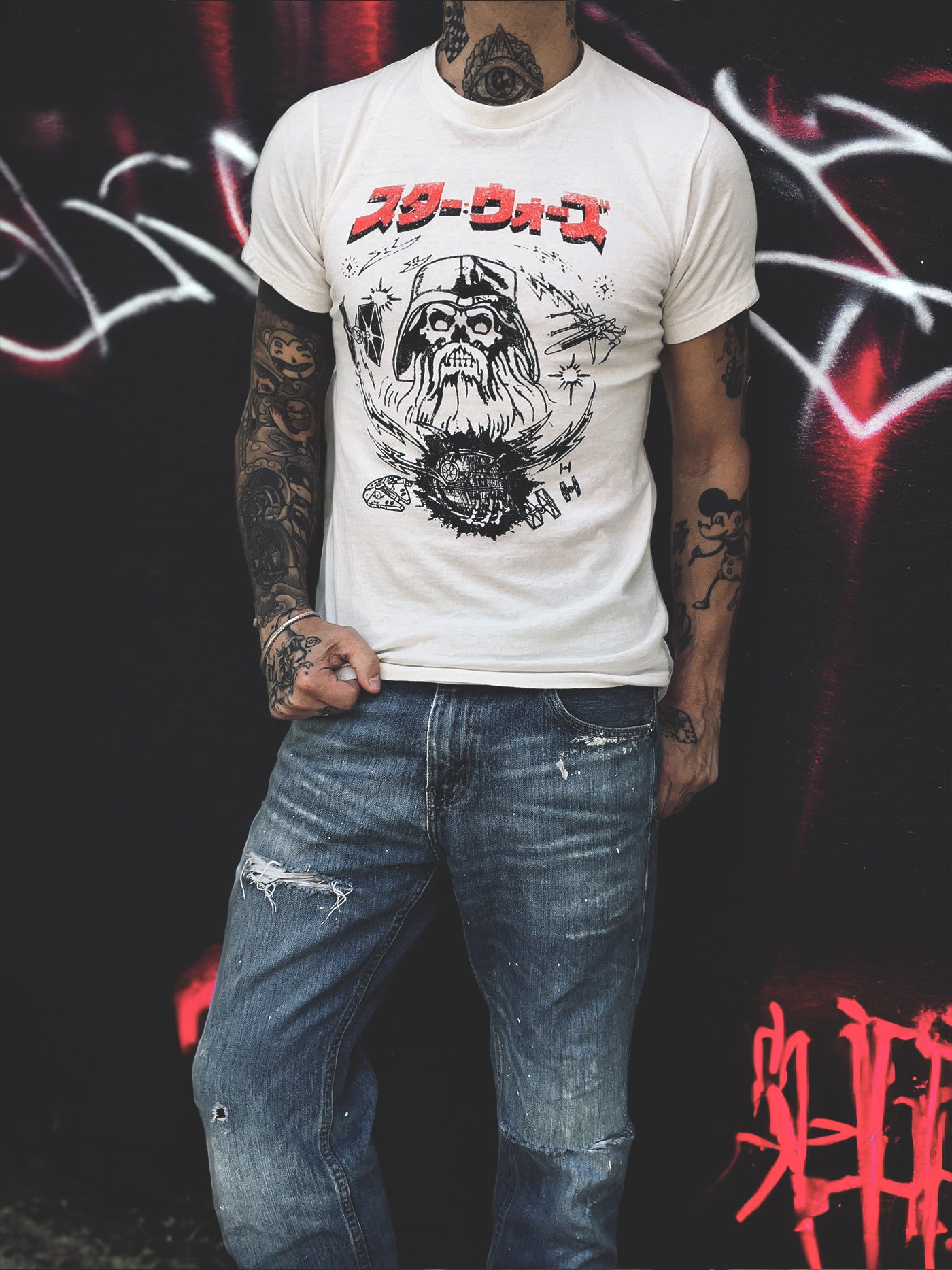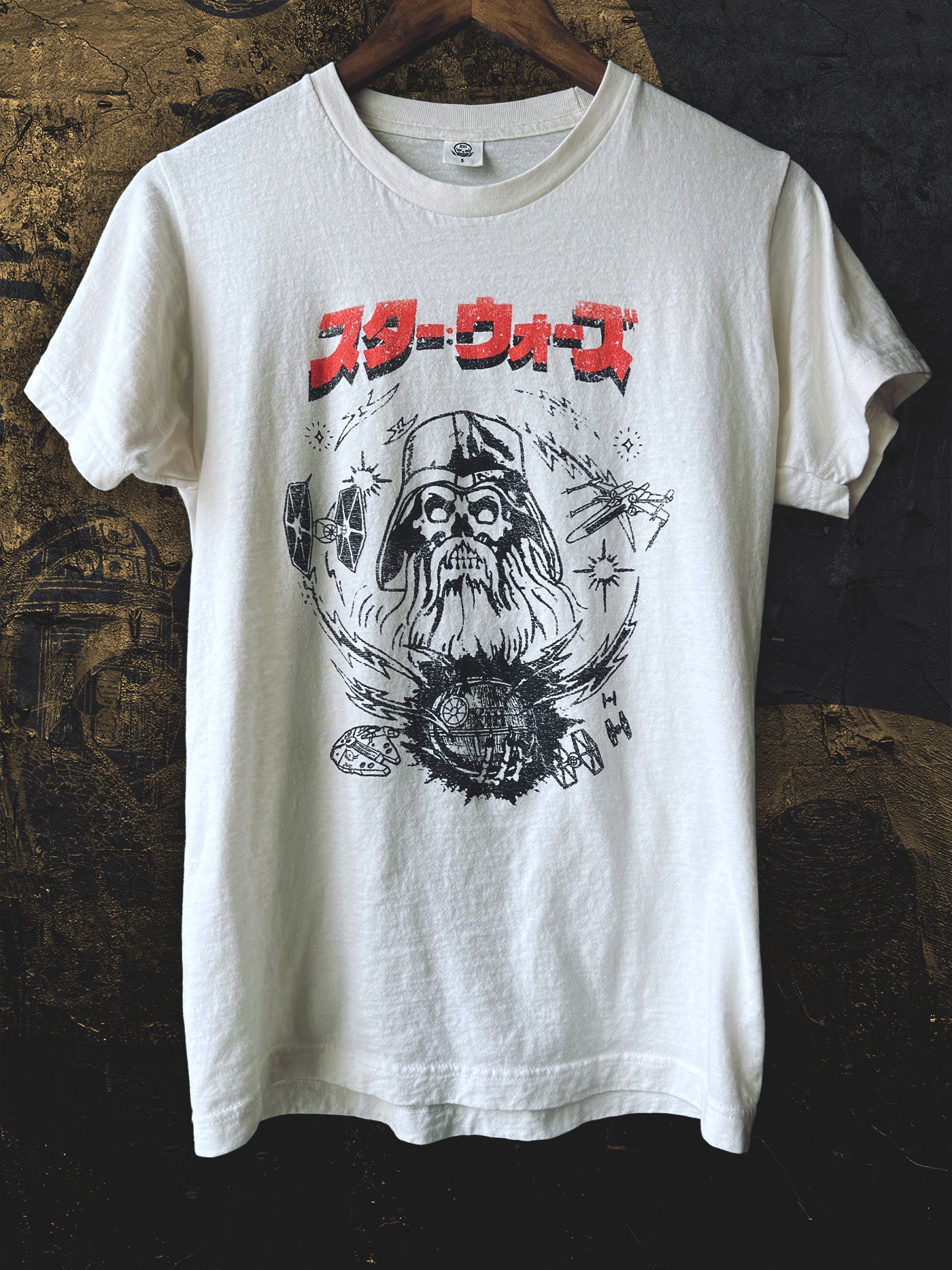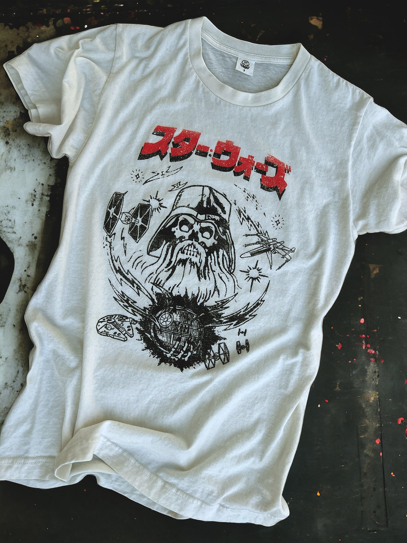 This original limited print release by artist Johnny Smoke is inspired by the captivating & slightly bizarre international Star Wars posters from 1977 that seem to be telling a story all their own. Features "STAR WARS" written in Japanese.